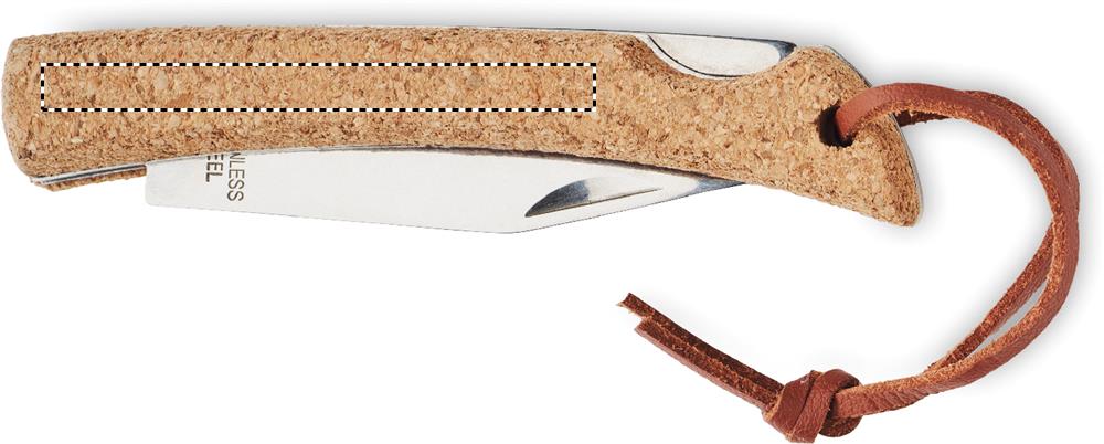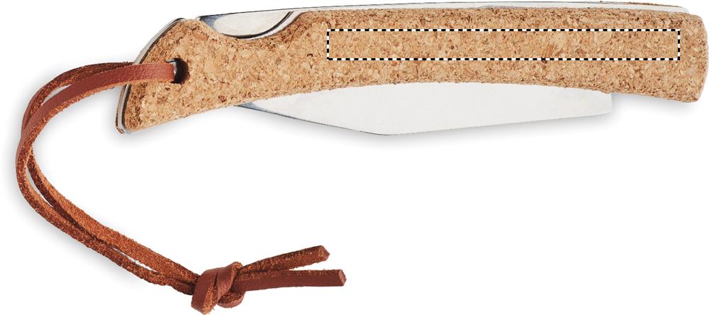 Складной нож из нержавеющей стали с пробковой ручкой и шнурком из полиуретана.
