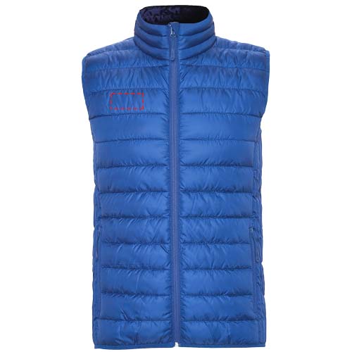Gilet vest with feather touch filling. Inverted zips with matching chin protector and puller. Two side pockets with zip. Elastic trim in hem and armholes. Contrasting inner lining. Light and foldable garment. Water resistant. Wind-proof model.