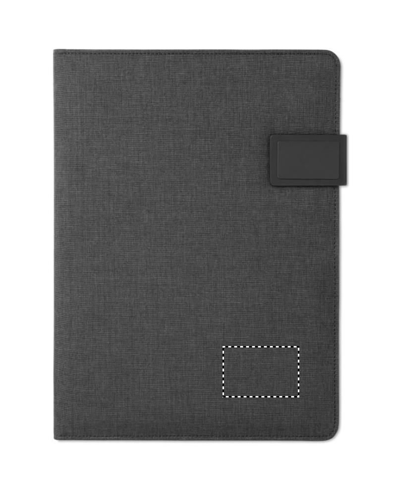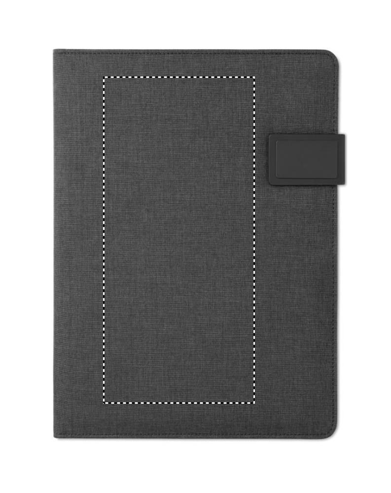 Папка формата А4 с аккумулятором ёмкостью 4000 мАч, подставкой для телефона или планшета, отделениями для ручек и карточек. Каждый лист разлинован и имеет календарь. Покрытие софт тач внутри, снаружи непромокаемый полиэстер.
