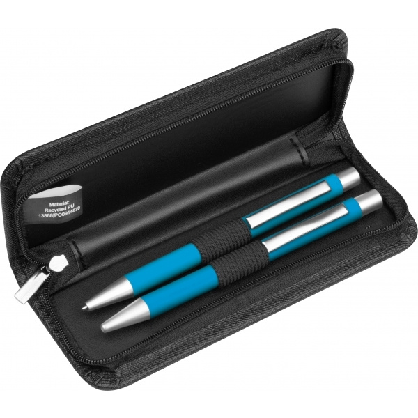 Набор для письма, состоящий из шариковой ручки из синего металла с пластиковым стержнем Jumbo и соответствующего механического карандаша с двумя грифелями 0,5 мм. Обе ручки имеют резиновую отделку для приятного ощущения, а корпус изготовлен из переработанного полиуретана.