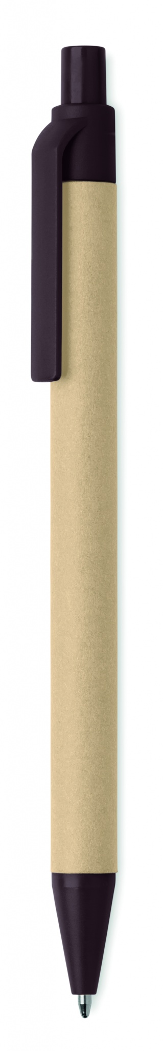 Ручка шариковая в корпусе из картона. Фурнитура является сплавом из 40% кофейной кожуры и 60% пластика АБС.