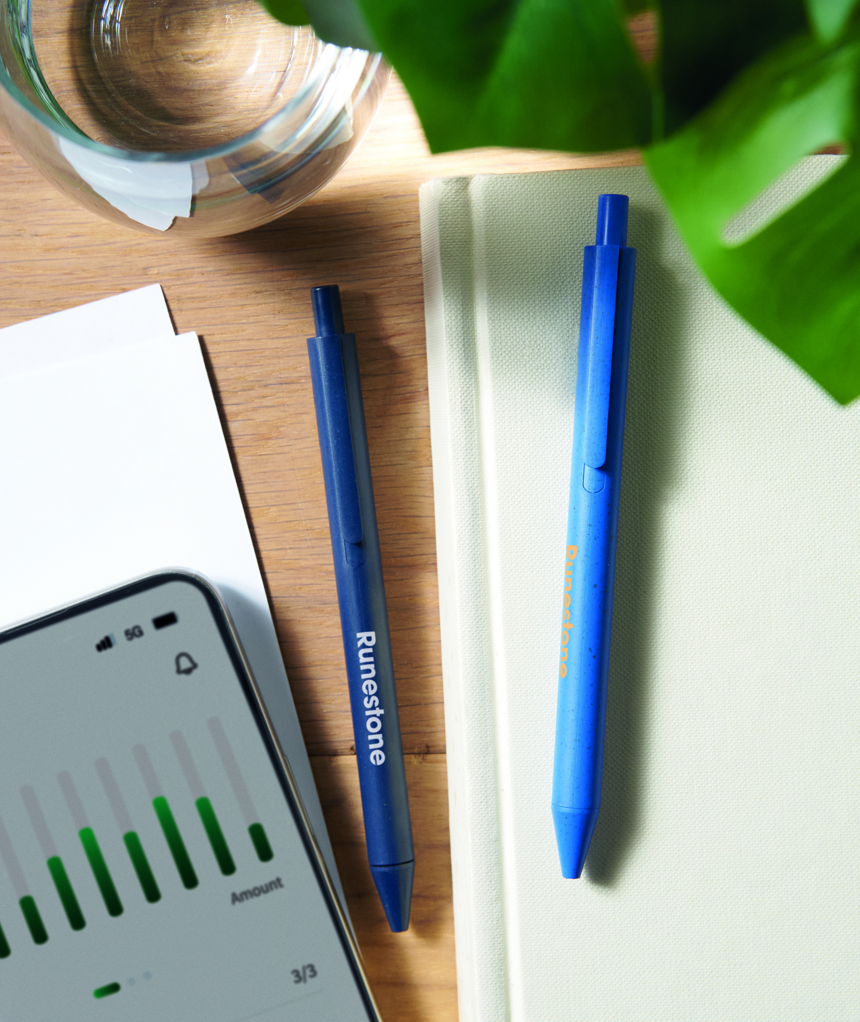 Ручка нажимная из зерноволокна и ПП. Синие чернила.