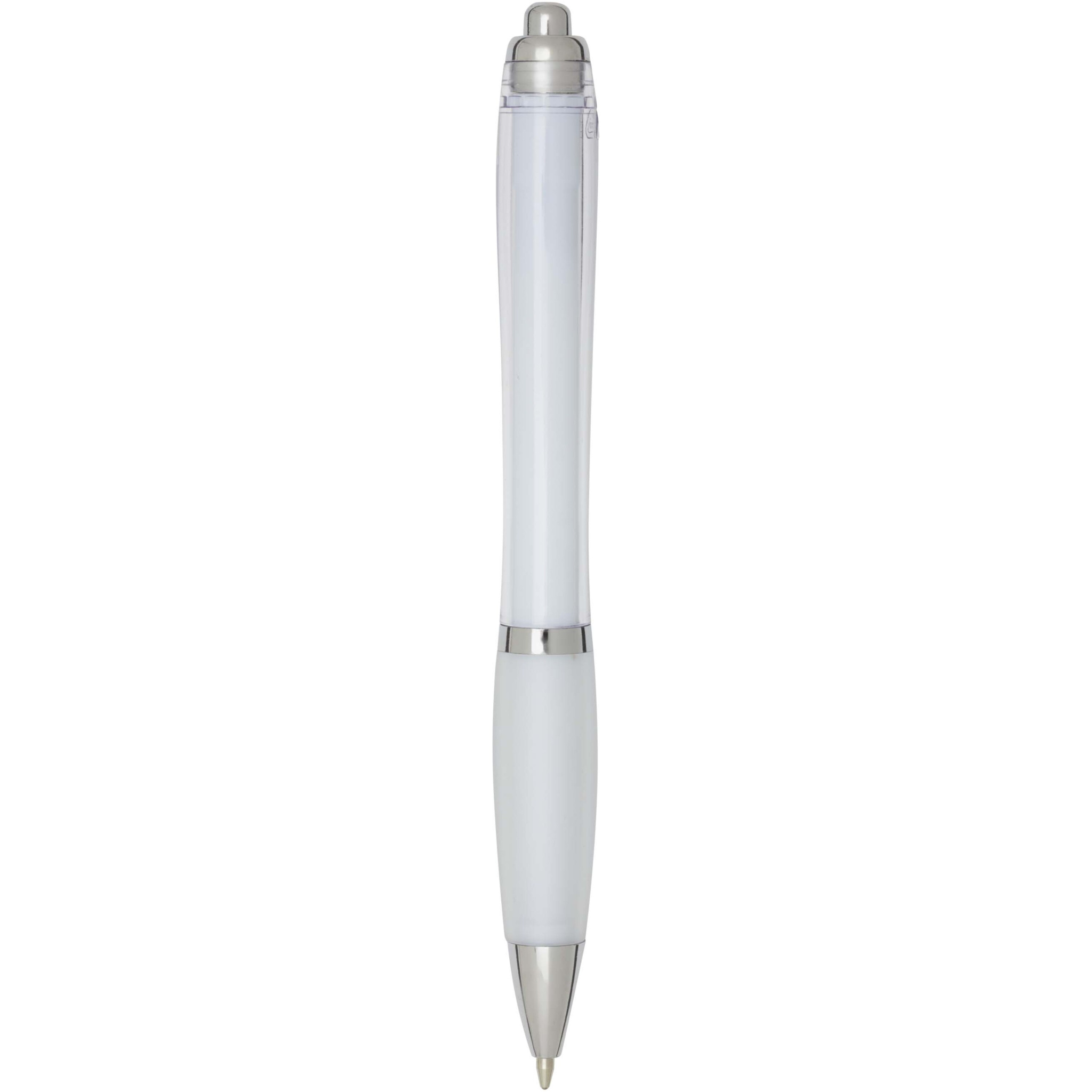 Шариковая ручка с нажимным механизмом Nash, изготовленная из переработанной пластмассы, имеет стильный изогнутый дизайн, прозрачный цветной корпус с серебристой отделкой и рукоятку подходящего цвета с мягким покрытием для комфортного письма. Изготовлена из переработанного ABS-пластика, сертифицированного RCS, что снижает потребность в материалах первичного изготовления не жертвуя износостойкостью. На обратной стороне изображен логотип rABS, подчеркивающий использование переработанных материалов. Цвет чернил: синий. Размер пера: 1,0 мм. Длина непрерывной линии: 1000 метров.