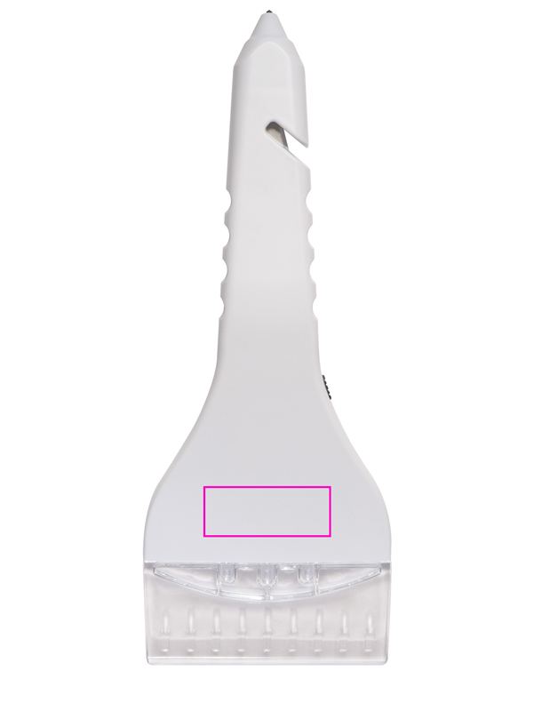 Скребок для льда 4 в 1 из ABS. Скребок для льда также может использоваться как ленточный резак, молоток для стекла или, благодаря 3 светодиодам, как фонарик. Мы печатаем ваш логотип по центру скребка.