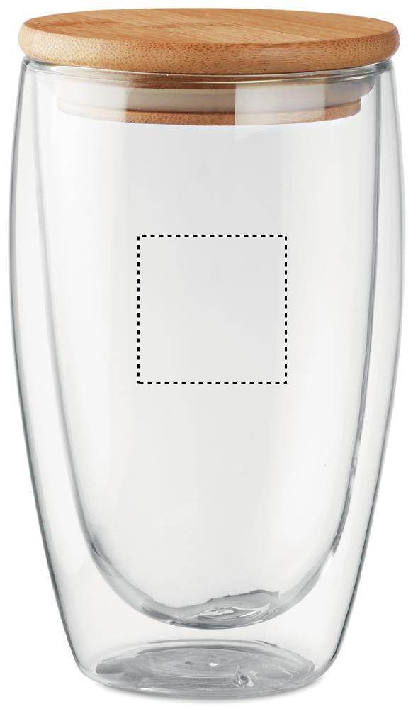Стакан двустенчатый из закаленного боросиликатного стекла с бамбуковой крышкой и силиконовой прокладкой. Емкость 450 мл.