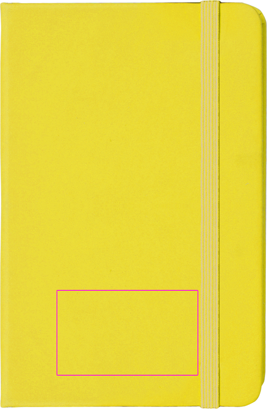 Тетрадь формата DIN A6 в бархатисто-полиуретановой обложке на 170 нейтральных страниц. На обложке напечатаем ваш логотип.