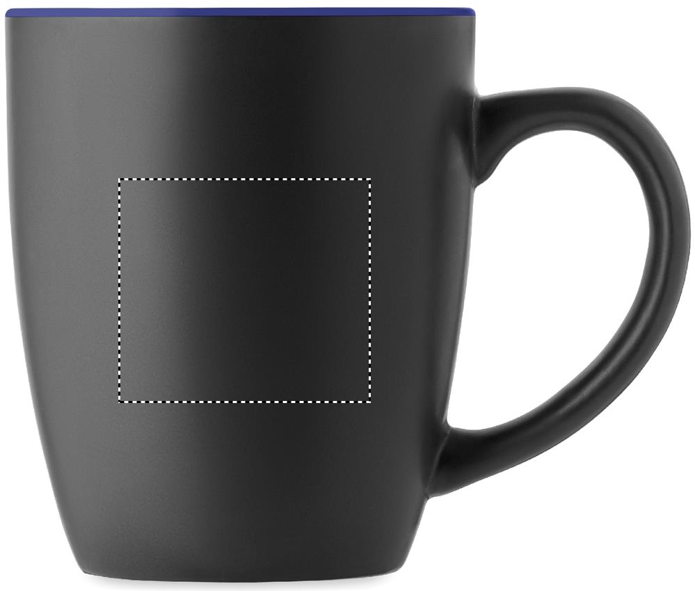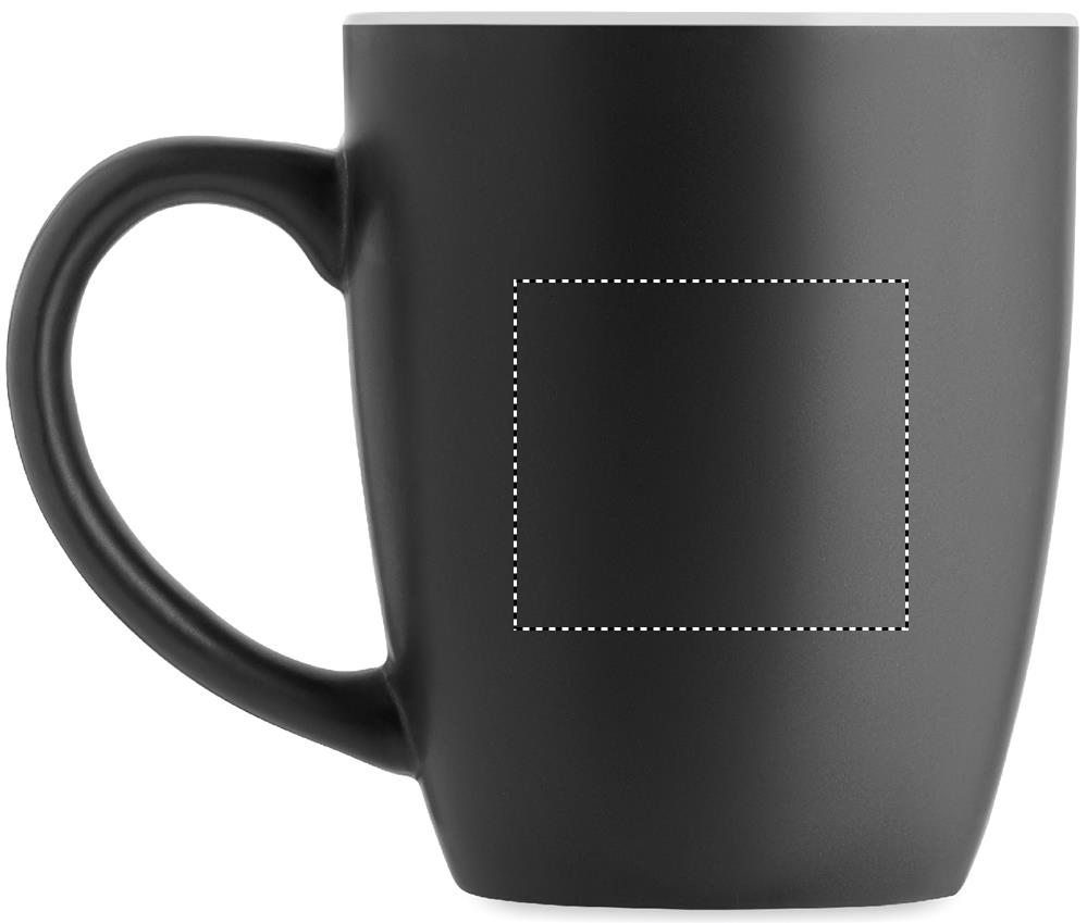 Svart matt keramikmugg med färgad glaserad insida. Kapacitet: 290 ml.