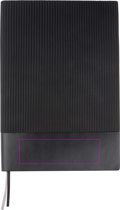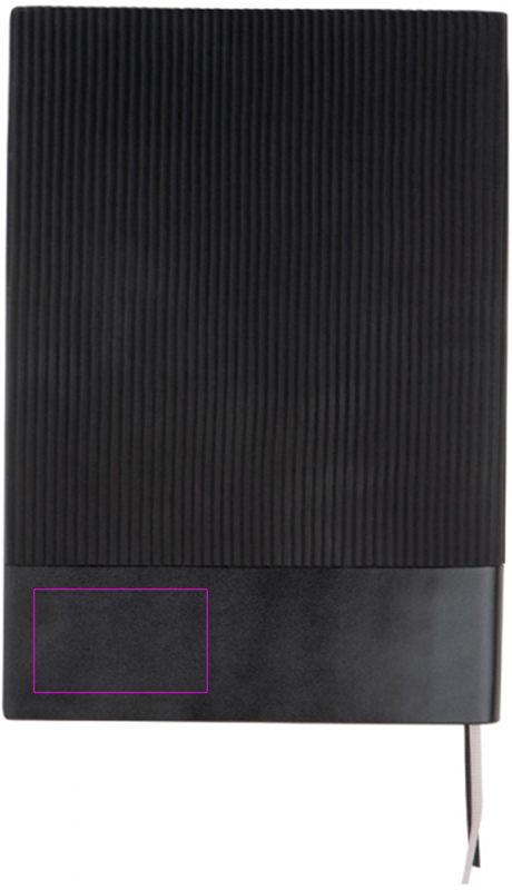 A5-anteckningsbok med 200 kvadratiska sidor, flexibelt mjukt PU-omslag och bokmärke. Vi trycker din logotyp på den främre släta ytan.