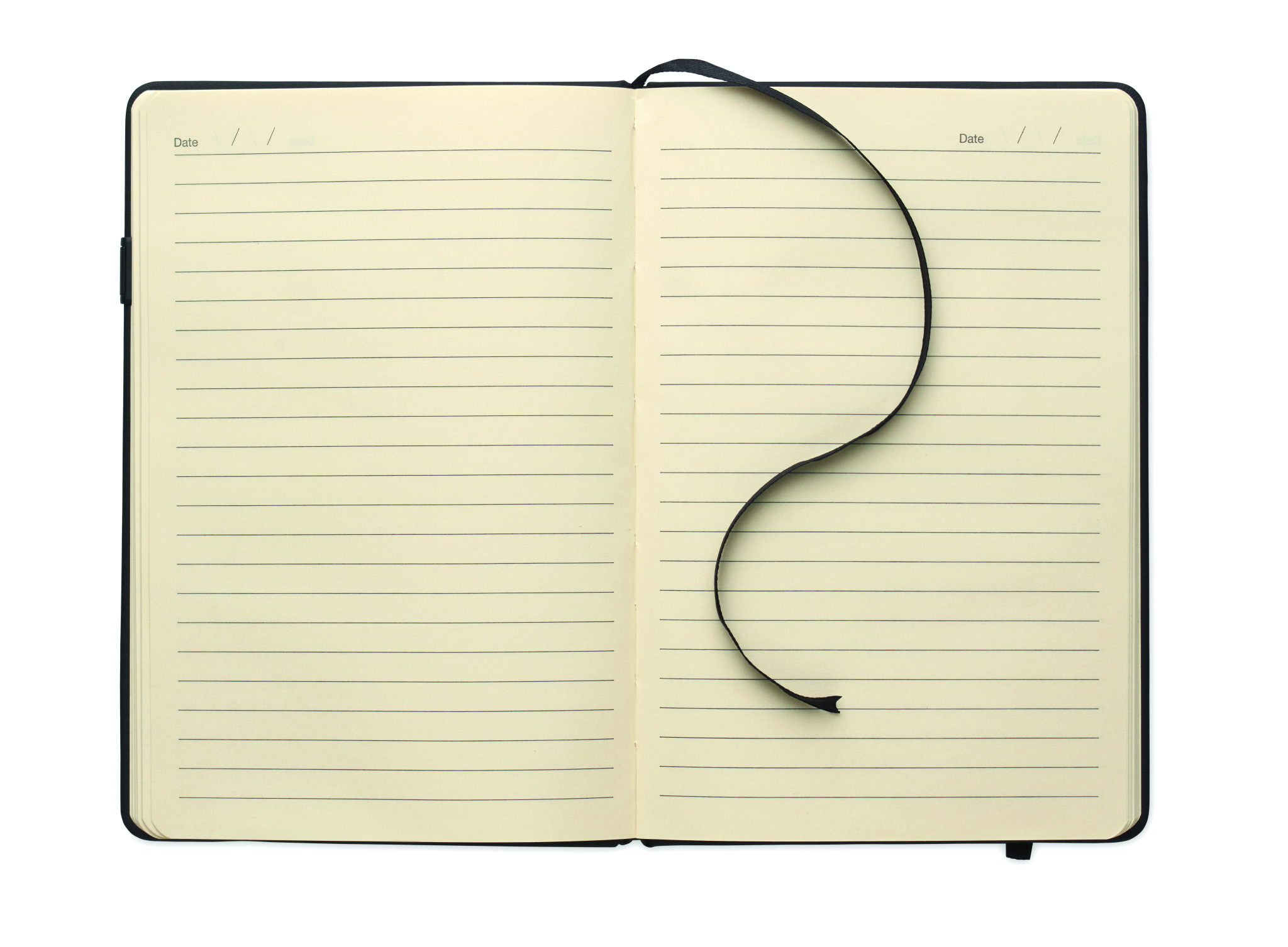 A5 anteckningsbok i hårt omslag tillverkat av 58% återvunnen polyester och 42% PU inklusive integrerat 16GB USB-minne. Inbunden, 160 linjerade sidor av återvunnet papper (80 ark). Matchande elastisk förslutningsrem och sidmarkering i band. FSC®-certified | FSC MIX CREDIT, P7.1, FSC-C213206