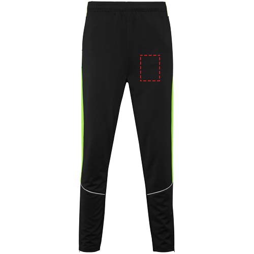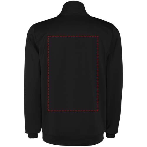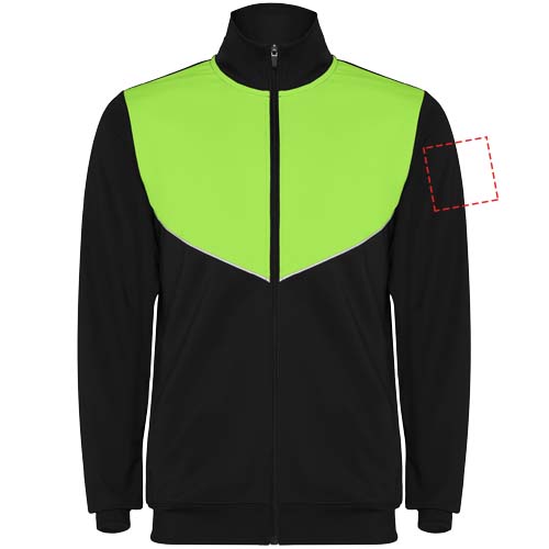 Träningsoverall i lätt och elastiskt tyg. Jacka med kontrasterande färg och sömnadskant på bröstet. Hög krage med kontrasterande sömmar. Centralt blixtlås fram. Sidofickor. 2 x 2 ribbade muddar och midja. Byxor med elastisk linning och dragsko. Kontrasterande sidostycke med sömnadskant. Dragkedja i fåll.
