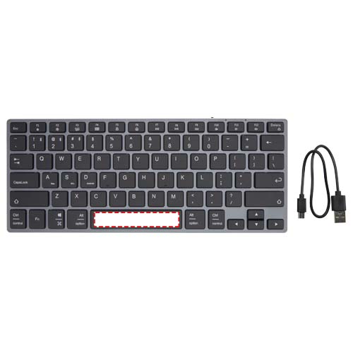 Lätt tangentbord (QWERTY-layout med 78 tangenter) med ett hållbart aluminiumhölje. Ett snyggt tillbehör när du arbetar hemifrån. Tangentbordet har Bluetooth® 4.0 för en stabil anslutning och låg strömförbrukning, och är kompatibelt med PC/bärbar dator, surfplattor, mobiltelefoner, smarta TV-apparater och andra enheter med Bluetooth®-funktion. Driftavståndet är upp till 10 meter. Standbytiden är upp till 10 månader efter en enda laddning med det inbyggda uppladdningsbara 350 mAh-batteriet. Levereras i en förstklassig kraftpapperslåda med ett färgstarkt klistermärke.