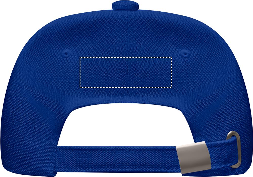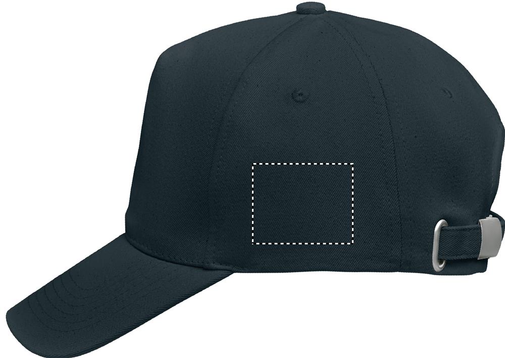 Keps med 5 paneler i 250 gr/m² ekologisk borstad bomull med justerbar rem med metallspänne på baksidan.