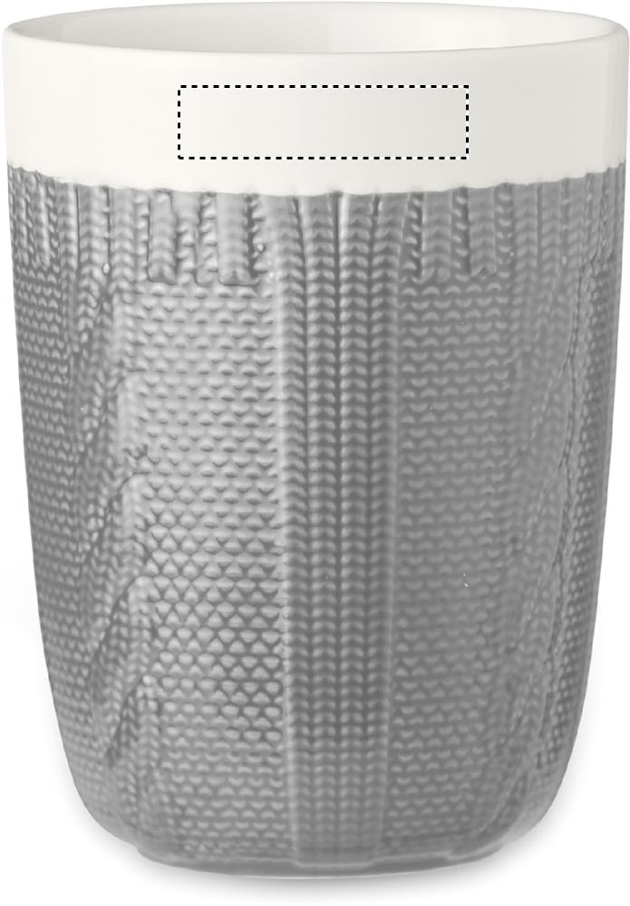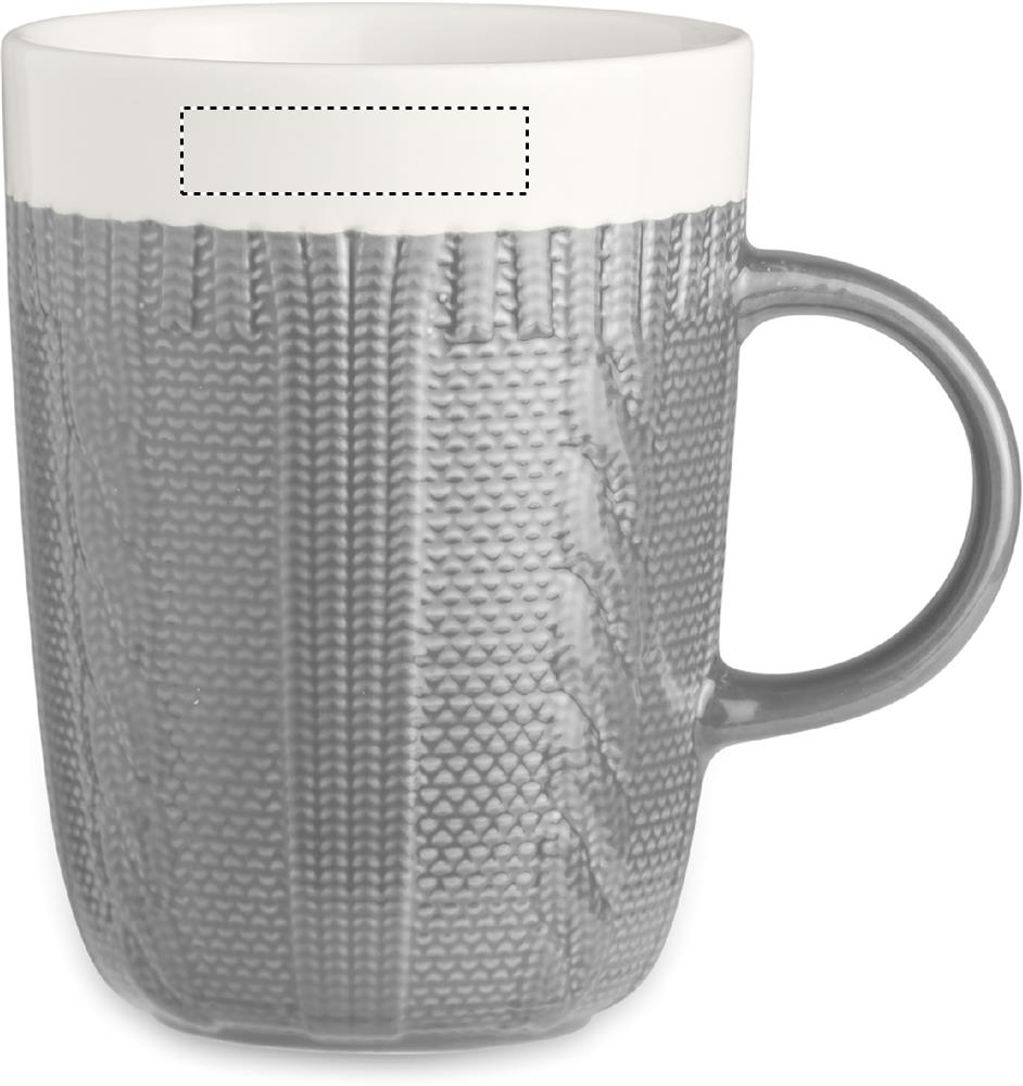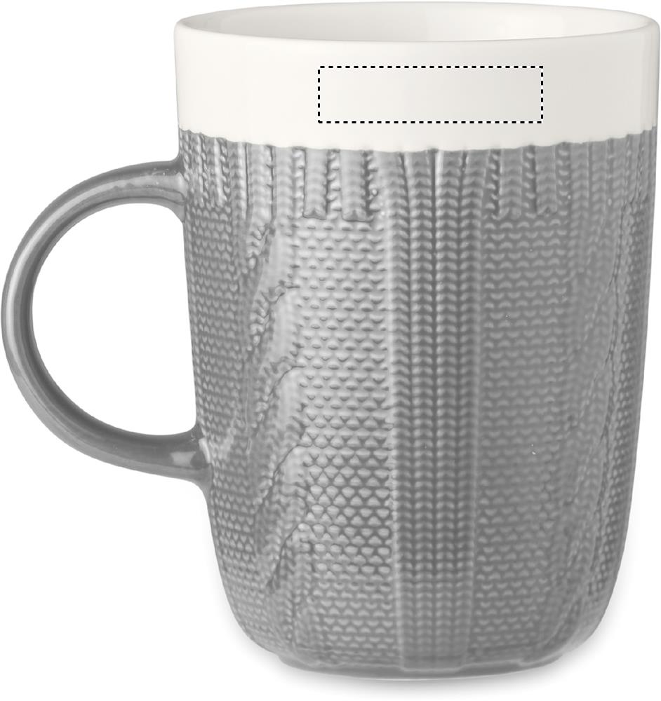 Keramisk mugg designad med snyggt stickat mönster. Drick ditt favoritkaffe, te eller varm choklad i den här koppen. Volym: 310 ml. Varje mugg levereras individuellt i presentbox.