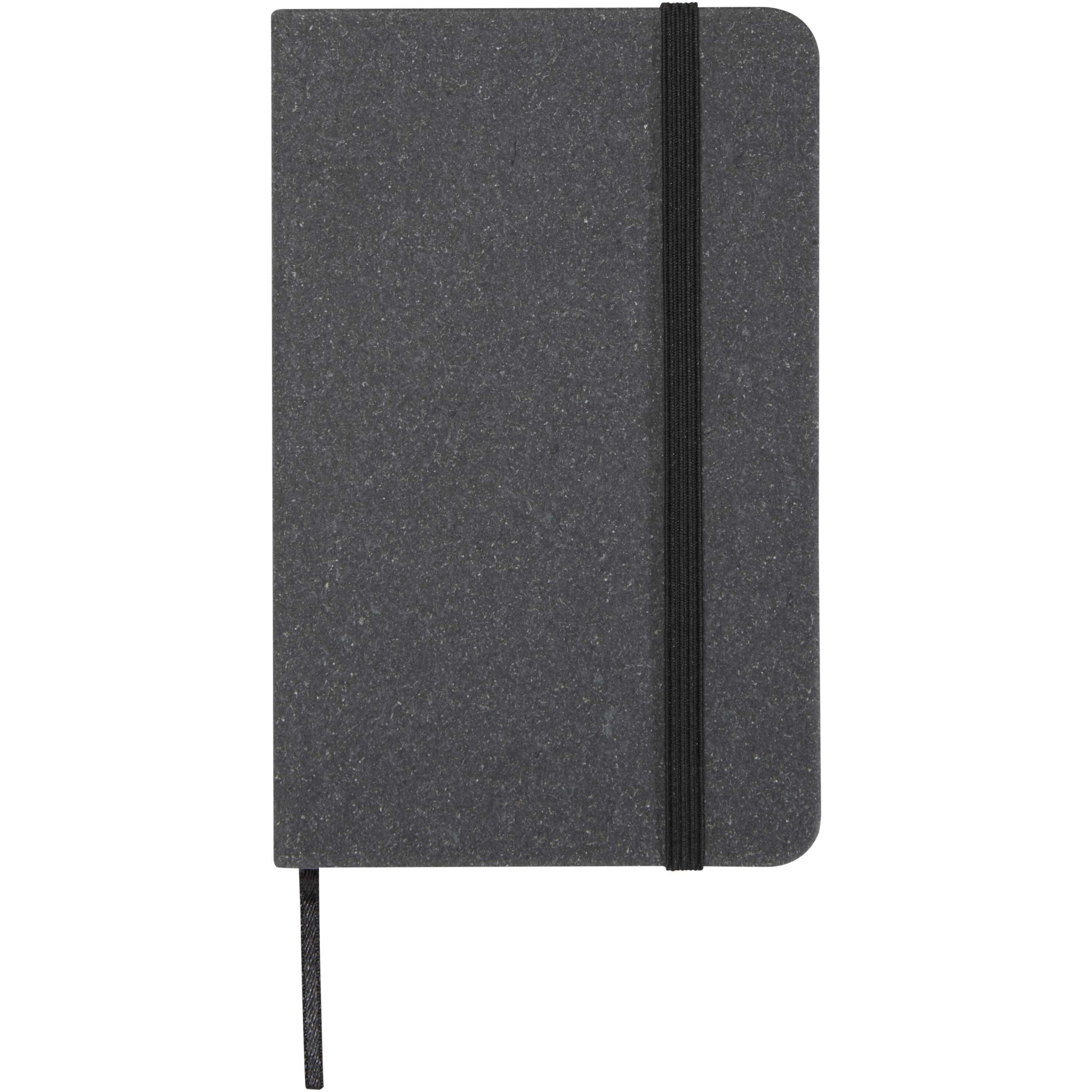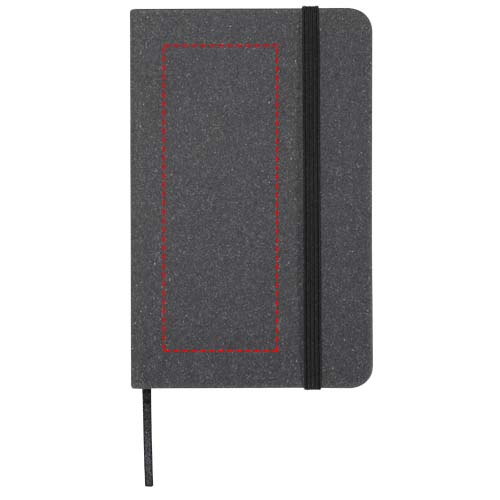 En praktisk presentförpackning med en A6-anteckningsbok och MagSafe-plånbok. Anteckningsboken har ett mörkgrått omslag av återvunnen plast, 80 linjerade krämfärgade ark av 70 g/m² papper och en svart elastisk förslutning. Den transparenta MagSafe-plånboken rymmer ett kort och fästs magnetiskt på iPhone 12 eller nyare modeller, och levereras även med en extra metallring för användning med andra telefoner. Båda artiklarna presenteras i en elegant presentförpackning av svart kartong.
