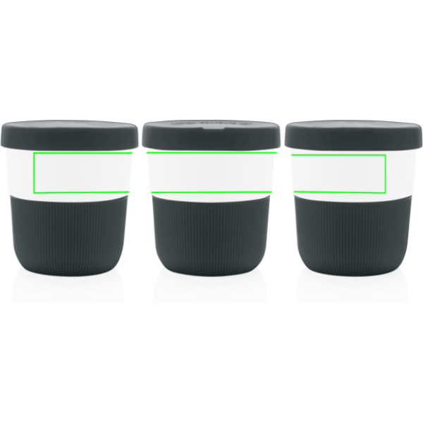 Ett hållbart alternativ till traditionella muggar! Tillverkad av växtmaterial (PLA), så muggen är inte bara snygg utan även snäll mot vår planet. Muggen har ett lock och grepp i silikon. Passar de flesat kaffeautomater. 100% fri från melamin. Volym: 280ml.