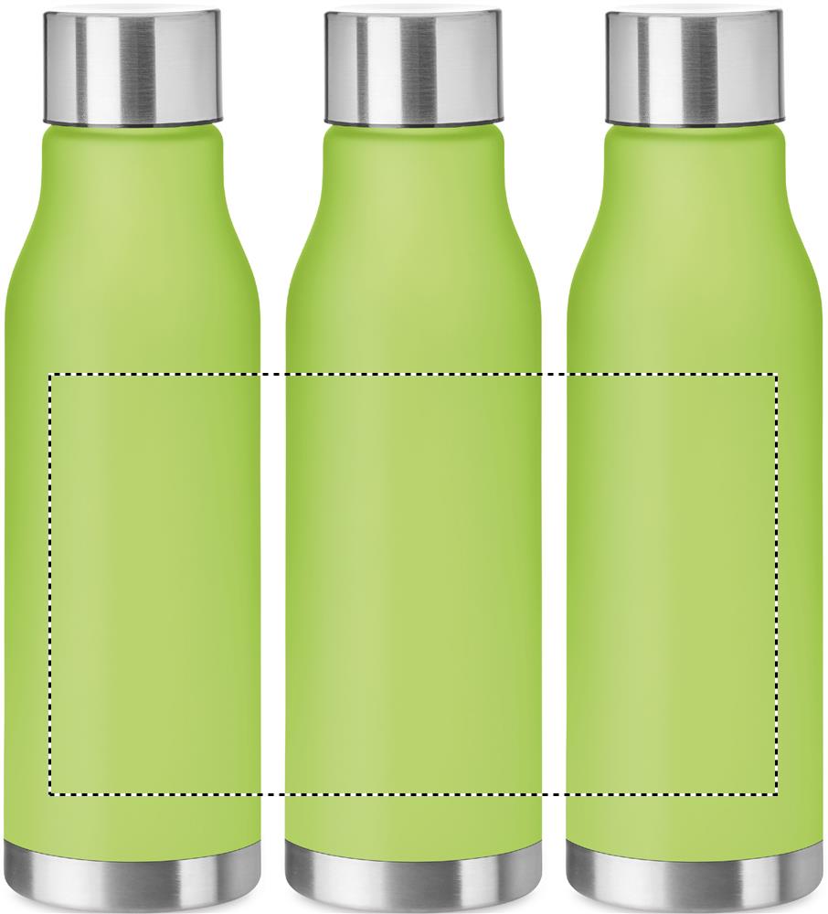 Flaska i RPET med gummierad yta och lock av rostfritt stål med inre RPET-lock och silikonring. Fri från BPA. Läckagefritt . Kapacitet: 600 ml. Ej anpassad för drycker med kolsyraLäckagefritt.