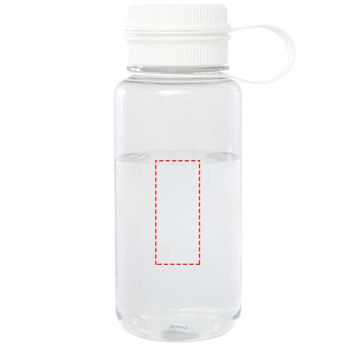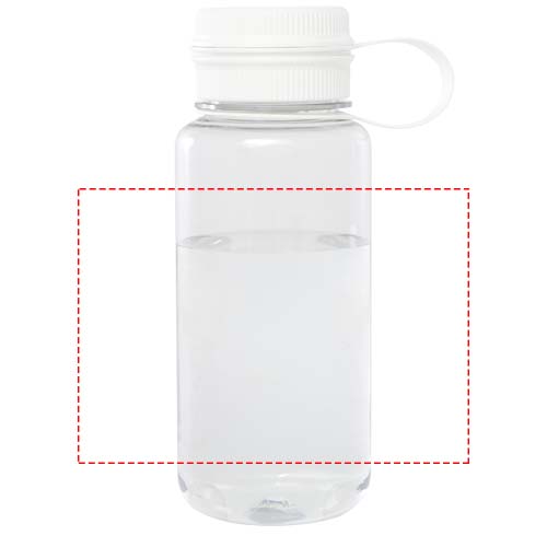 Sportflaska med enkelvägg tillverkad av RCS-certifierad RPET, med skruvkork och läckagesäkert lock och ett bekvämt bärhandtag integrerat med korken. Dubbel öppningskonstruktion för enkel rengöring och fyllning. Uppfyller kraven i den EFSA-godkända (European Food Safe Authority) processen för återvinning av PET. Volymkapacitet: 900 ml.