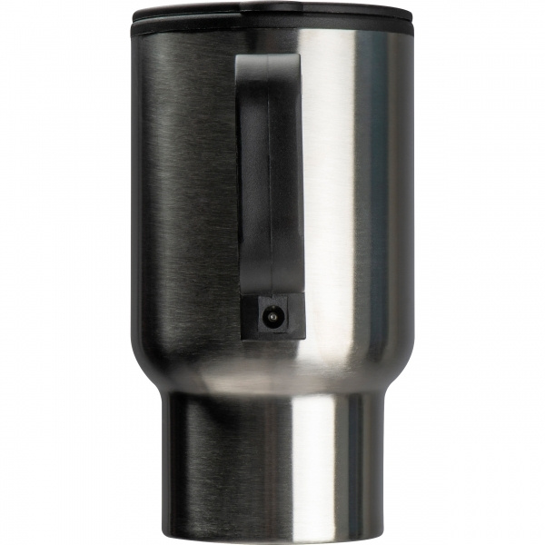 Rostfri mugg med USB-anslutning för att hålla värmen och en kapacitet på 400ml. Perfekt för bilen eller arbetsplatsen. Vi laserar din logotyp till vänster om handtaget.