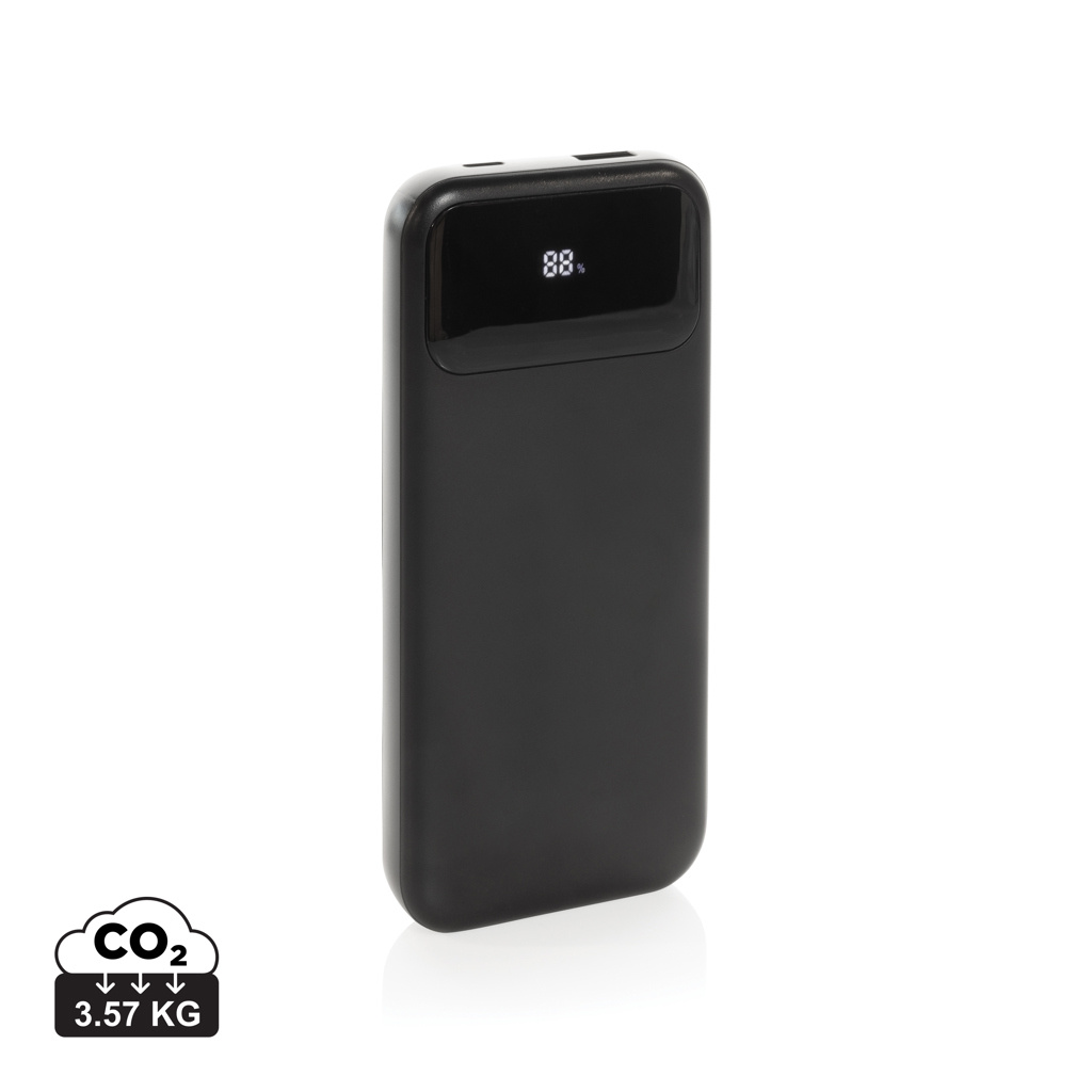 Allt i ett snabbladdande powerbank med integrerade kablar och strömdisplay. Powerbanken på 10.000 mah levereras med en integrerad typ C- och integrerad Apple Lightning-kabel för enkel anslutning. Med ytterligare en typ C-port och en USB A-port för att ansluta din egen laddningskabel. När powerbanken är fulladdad ger den dig tillräckligt med energi för att ladda din mobiltelefon upp till fyra gånger. Powerbanken innehåller ett långvarigt litiumpolymerbatteri av klass A på 10.000 mAh. Tillverkad av återvunnen ABS och återvunnen TPE. Totalt återvunnet innehåll: 21% baserat på artikelns totala vikt. RCS-certifiering säkerställer en helt certifierad leveranskedja för återvunnet material. Med digital display som visar återstående effekt. Förpackad i FSC® kraftförpackning. PVC-fri. USB-A-utgång 5V⎓3,0A, 9V⎓2A, 12V⎓1,5A; USB-C-utgång 5V⎓3,0A, 9V⎓2,22A, 12V⎓1,67; Typ-C-ingång 5V⎓3,0A, 9V⎓2A, 12V⎓1,5A; Inbyggd USB-C-kabel. Utgång: 5V⎓3A 9V⎓2A 12V⎓ 1,5A;