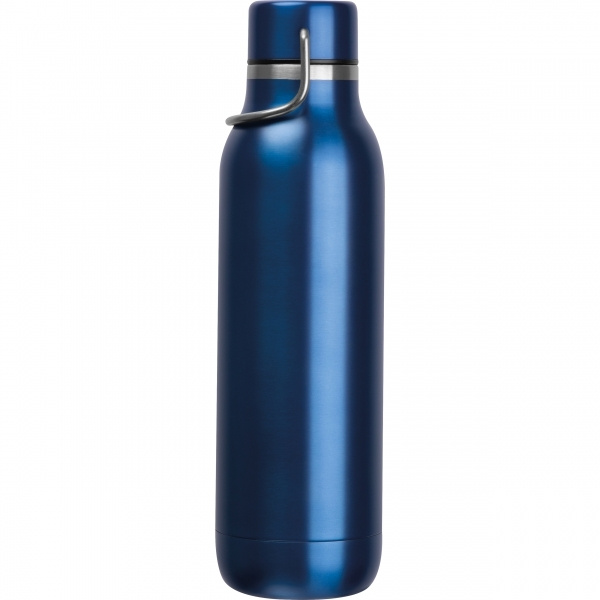 Dubbelväggig dricksflaska i rostfritt stål med bärhandtag på locket och en kapacitet på 600 ml. Din logotyp appliceras på flaskan med lasergravyr.
