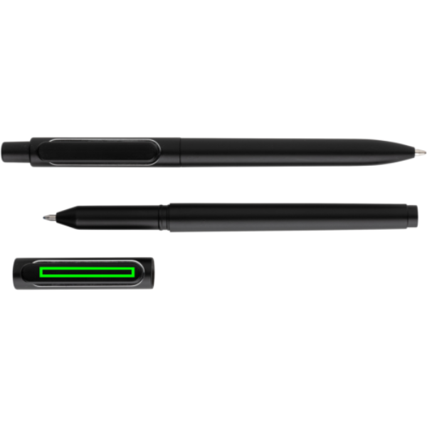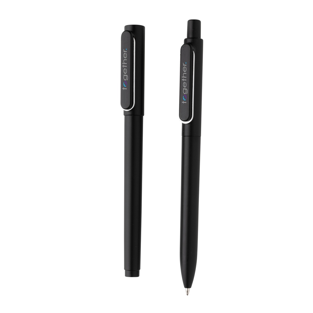 Pennorna i detta set har en metallfinish och metallclip. Setet innehåller en X6 penna och en X6 cap pen. X6 pennan har ca. 1200m skrift, blått tyskt Dokumental®-bläck och TC-kula för extra skön skrivkänsla. X6 cap pennan har blått bläck med låg viskositet som ger en ännu skönare skrivkänsla. Låg viskositet ger ett bättre flöde för bläcket vilket förbättrar smidigheten. Ca. 800m skrift. Båda pennorna har blått bläck. Levereras i en färgmatchande presentkartong.