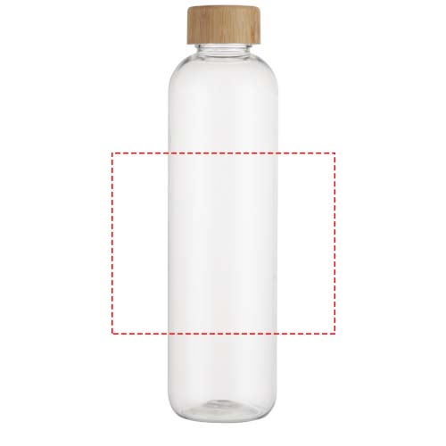 Vattenflaska tillverkad av återvunnen plast, med ett snyggt lock av bambu. Flaskan har enkelvägg, är BPA-fri, testad och godkänd enligt tysk lagstiftning om livsmedelssäkerhet (LFGB). Testad och godkänd för ftalat-innehåll enligt REACH-förordningen. Bambun kommer från hållbara, miljömässigt och socialt ansvarsfulla källor. Volymkapacitet 950 ml. Handdisk rekommenderas. Levereras i en presentförpackning av återvunnen kartong.